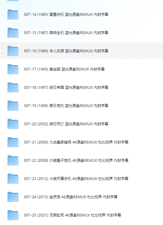《007》系列电影25部+外传2部 蓝光原盘REMUX 内封中英字幕 动作 冒险 谍战